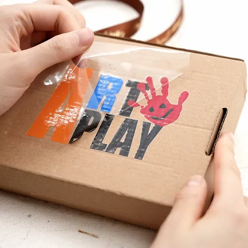 There is glue around the transfer sticker. If the texts or details are more complex or smaller, more glue will be around them. The transfer sticker generally cuts the sticker material into shapes, graphics, or text, and then removes the background.