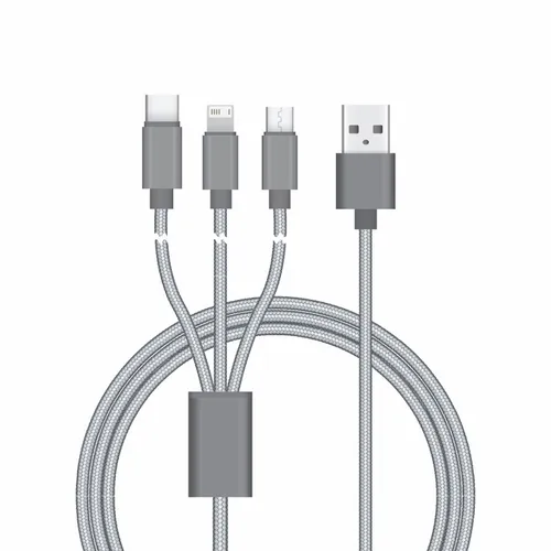 This sleek braided 3-in-1 charging cable covers all Smart Phones on the market. Featuring a micro USB, Type-C USB and a lightening connector for iPhones, Connect Reach supports simultaneous charging for 3 devices, all combined in one power cord. This extra-long, durable and stylish cable will charge all your devices while you are on the go or at home. No need to worry anymore about carrying multiple cables with you. This cable will allow you to freely use your device while charging another.