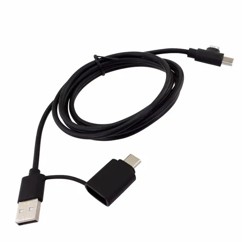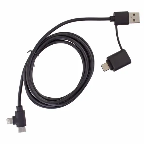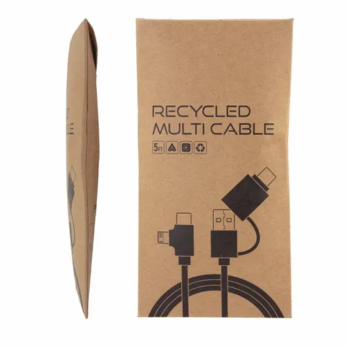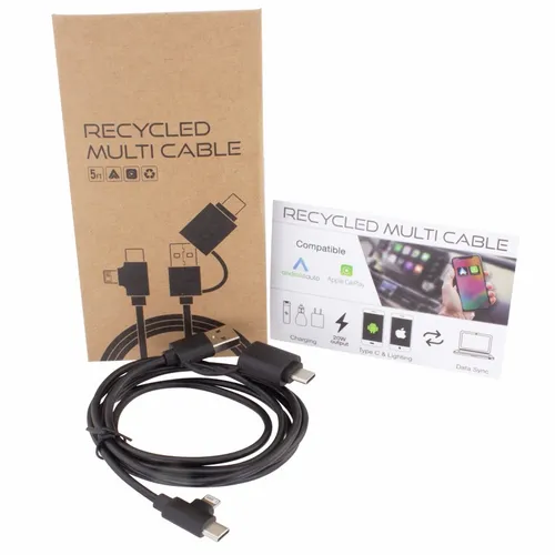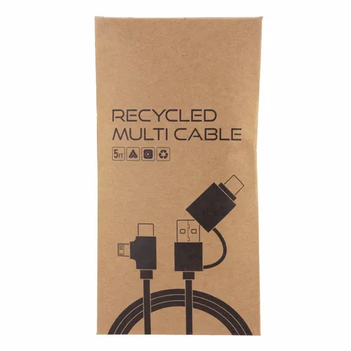 The Recycled Multi-Cable works as a charging and data cable. It helps keep dynamic business teams equipped with the right connections for today's devices. Whether at the office, on the road, or in flight this cable is an easy-to-store cable that anyone would appreciate.