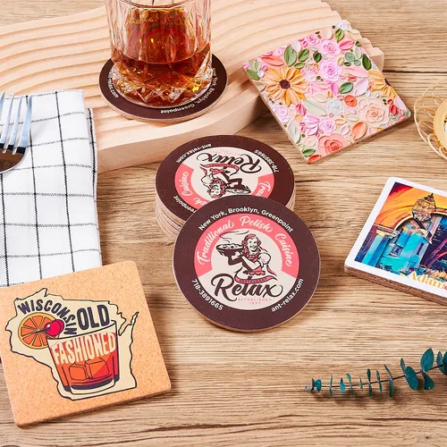 - this coaster is similar to a cork; this material is also highly absorbent. Made of high-density fiberboard that protects your furniture from both hot and cold beverages. A perfect choice for home or business use, and even as a gift.
