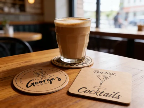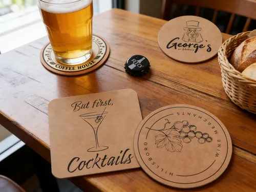 Kraft paper or kraft is paper or paperboard (cardboard) produced from chemical pulp produced in the kraft process. This coaster can be printed in full color (including photos, landscapes, and wedding images) and restore the required LOGO in full bloom. This coaster can also be customized in shape, making the form you need come true and making your LOGO more conspicuous and unique.