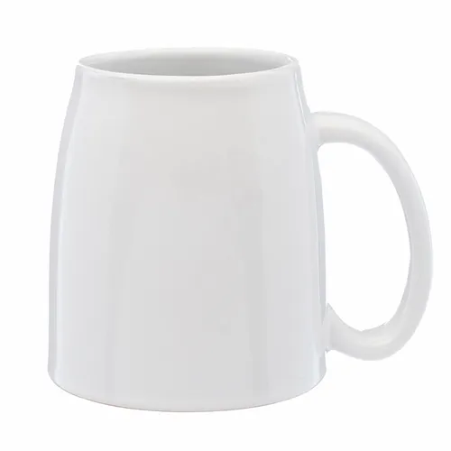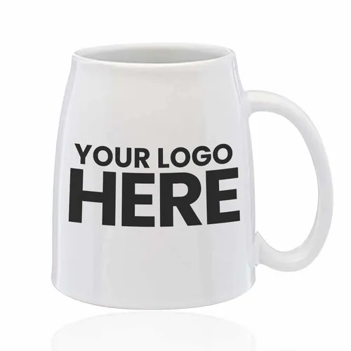 White Ceramic Coffee and Beer Mug. Smooth Shiny Finish. 18 oz. Capacity. Recommended Hand Wash Only