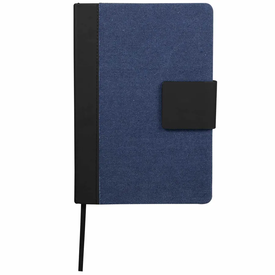 The 5.5 x 8.5 FSC Recycled Canvas Bound Notebook is a stylish choice for daily notes and ideas. Featuring a 100% recycled cotton canvas cover with a recycled PU spine and magnetized closure, this notebook offers both durability and eco-conscious design. Inside, it includes 80 sheets of FSC recycled cream lined paper for a smooth writing experience, along with a black ribbon page marker to keep your place. By choosing this notebook, you’re making a positive impact on the environment through a partnership with 1% For The Planet, as a portion of each sale supports environmental nonprofits.