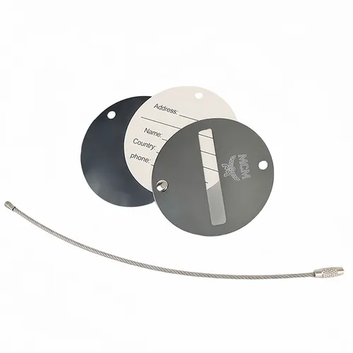 Round Aluminum Luggage Tag - Introducing our Round Aluminum Luggage Tag – the perfect blend of style and functionality. Crafted from premium quality Aluminum Alloy, these tags add a touch of elegance to your travel gear. Designed to withstand the rigors of travel, they feature a secure buckle strap and a privacy flap to protect your personal information. Elevate your journey with our Luxury Leather Luggage Tags and travel with confidence and style.
