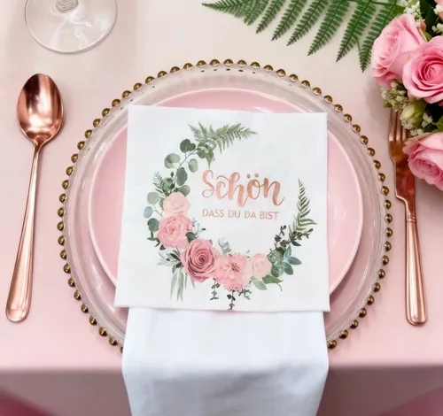 Foil stamping applies metallic layers to the napkin surface, creating a shiny and luxurious finish that catches the light beautifully. Embossing, on the other hand, raises the design above the napkin’s surface, adding a tactile and elegant dimension. Both techniques can be customized to suit the theme and tone of your event.
