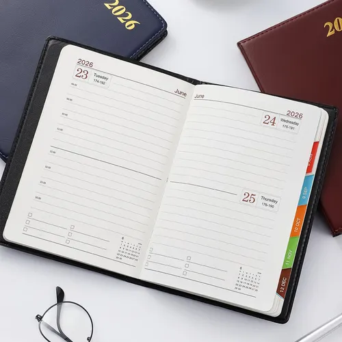 • A sleek, soft-touch planner with a durable PU leather cover, designed for daily planning and professional use.