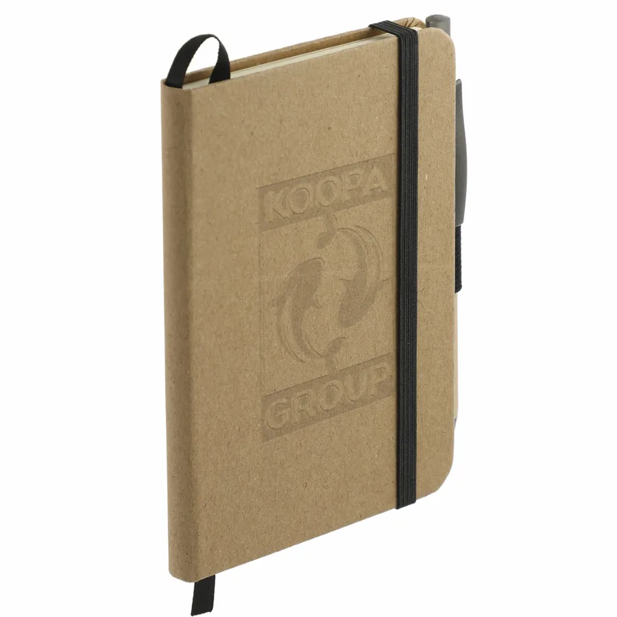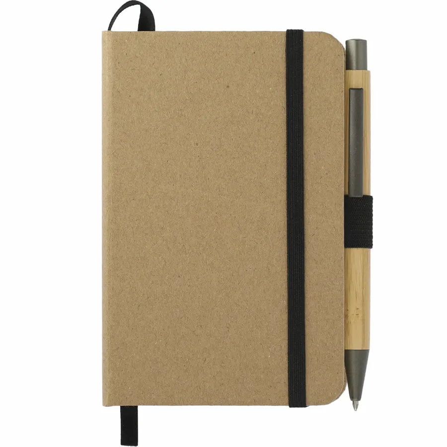 The 3.5 x 5.5 FSC Mix Pocket Bound Journal Set includes the 3.5 x 5.5 FSC Mix Pocket Bound Journal (2800-96) and the Bamboo Quick-Dry Gel Ballpoint (1066-49). The 3.5 x 5.5 FSC Mix Pocket Bound Journal features a FSC Mix paper, hard cover. 80 sheets of cream FSC-certified lined pages. It also features an elastic closure, ribbon page marker, elastic pen loop and back document pocket. And through a partnership with 1% For The Planet, one percent of sales of all EcoSmart products are donated to environmental nonprofits. Due to the nature of the material, there may be color variances.