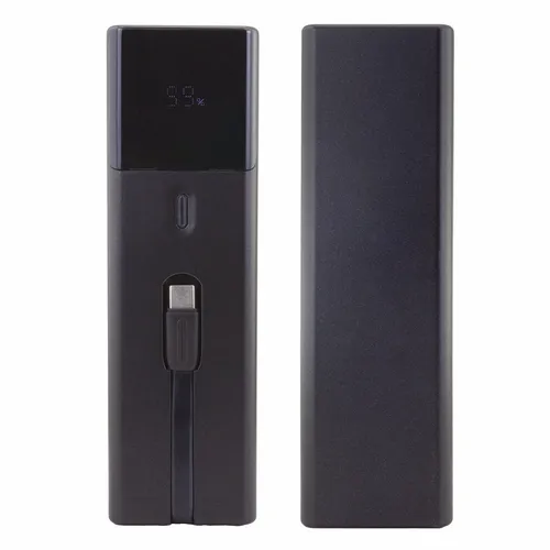 A laptop and smart phone power bank with a built-in cable for input/output. A perfect blend of function and size. It's the smallest power bank with 100W output to charge all laptops with a type-C power port. Specifications: Battery: LI-ION Battery USB-A Output: 5V /2.1 A;9V /2.0A; 12V / 1 .SA; 1 0V /2.25A TYPE-C Output & Input: 5V /3.0A;9V /3.0A; 12V /3.0A; 15V /3.0A;20V /5.0A Built-in TYPE-C Cable Output & Input: 5V /3.0A;9V /3.0A; 12V /3.0A; 15V /3A;20V /5.0A Capacity: 10