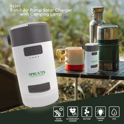 3-in-1 Air Pump Solar Charger with Camping Lamps