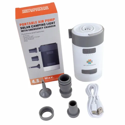 A perfect tech companion for outdoor activities. It is a solar charger for your phone at 4000mAh capacity. It is an air pump with multiple adapters for your air mattress, inflatables for pool and beach. It is a camping lantern with three brightness setting. It is an air duster for cleaning your desk and keyboard. Eco Friendly, recharge it with the solar panel built-in. In a hurry, recharge it with Type C cable.
