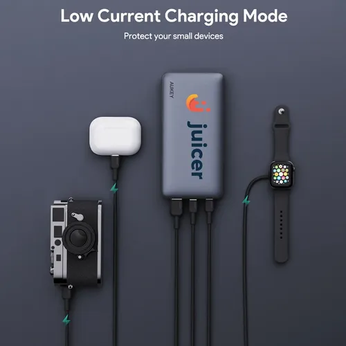 A 65W 20,000 mAh PD laptop power bank that is powerful enough to charge laptops. Charges 3 devices at once via 1 USB-A and 2 USB-C ports. It supports both PD and Samsung super-fast charging and can fully charge an iPhone 15 times. Features a small-current charging mode for recharging smart watches and AirPods, an easy-to-read battery level display, and is portable and slim for easy carrying on-the-go.