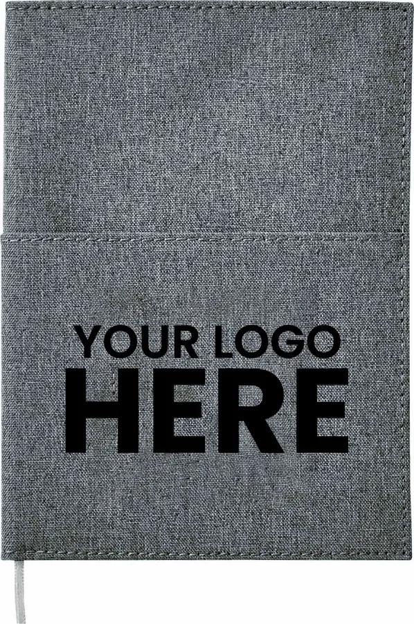 The Bullet 5 x 7 FSC Mix Canvas Pocket Refillable Notebook is a striking refillable notebook with front and back pockets for storing business cards, your smartphone, pens, and more. It features an eye-catching canvas cover with an elastic closure, pen loop, and ribbon page marker. The 5 x 7 FSC Mix Canvas Pocket Refillable Notebook contains 50 sheets of FSC Mix white lined paper, perfect for taking notes or jotting down ideas.