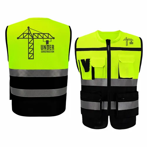 Take on the toughest worksites with confidence in our Heavy-Duty, Two-Tone Safety Vest. Built from durable warp-knitted fabric, this vest is designed to deliver exceptional strength, comfort, and long-lasting performance in demanding environments. The two-tone color design with contrasting black trim not only enhances visibility but also gives a sharp, professional look that hides dirt and wear. Equipped with five practical pockets, Velcro-secured on the top and zippered on the bottom, it provides convenient storage for tools and essentials, helping your team stay organized on the job. Add your company logo to elevate your crew’s professional image and showcase your brand’s dedication to safety, reliability, and quality.