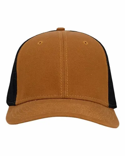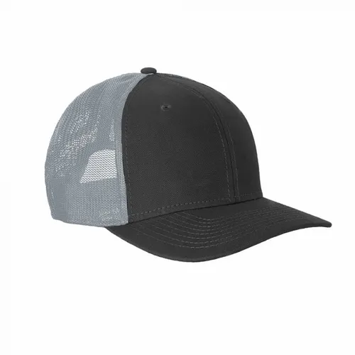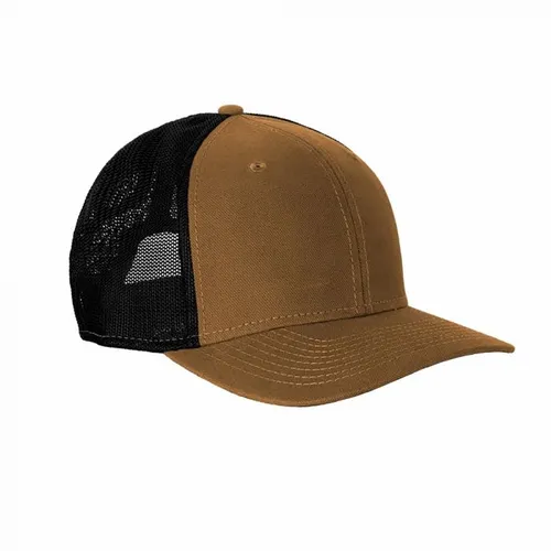 Front: 100% Cotton, 10 oz. Canvas Back: 97% Polyester/3% Elastane, Stretch Mesh Back Professional Fit: Structured, Pro Shape Profile, Slightly Curved Bill Six-panel Stretch-fit Sweatband Snapback Closure