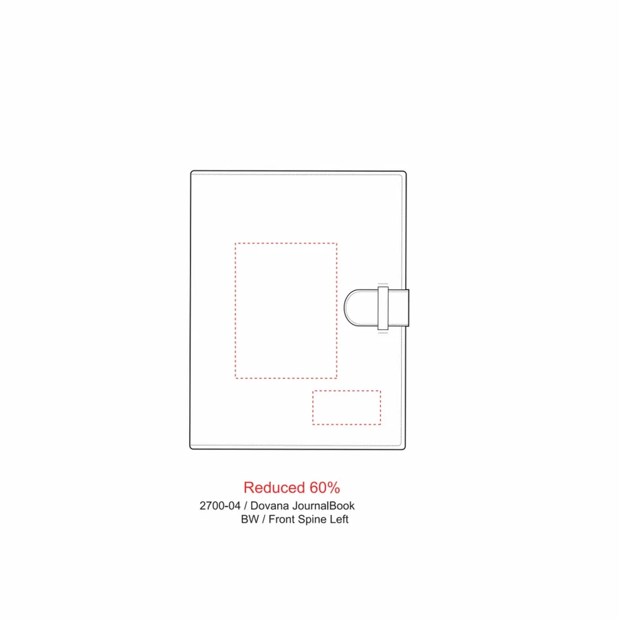 The 6.5 x 8.25 FSC Mix Dovana™ Journal includes a business card slot, elastic pen loop (pen is not included), and tab-and-loop closure. This customizable notebook features blue and silver ribbon page markers. The Dovana™ Journal includes 80 sheets FSC Mix white lined paper refill.