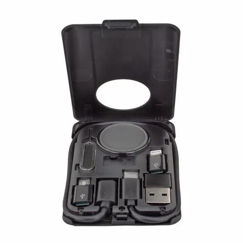 Chi-Charge Cable Card with Watch Charger - Collapsible Wireless Charging Stand and Charging Cable Carriers
