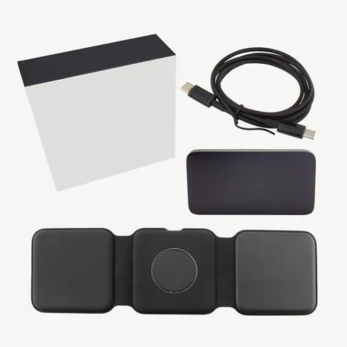 This is the perfect travel kit for busy teams that travel a lot for business and need to keep multiple devices charged and ready to go. It comes with our new Chi-Charge Stack(#2176) that wirelessly charges a phone, Apple Watch, and AirPods, plus our new slim and convenient USB-C and USB-A AC adapter(#2181) that comes with a Type-C power cord so you can get to charging immediately. It all comes packaged in a portable zipper case. Includes*: Chi-Charge Stack wireless charging mat (Exclu
