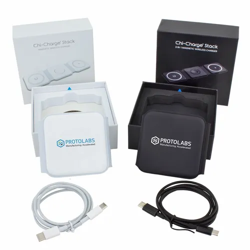 Charging multiple devices at once while traveling just got easier. The Chi-Charge Stack is our brand-new compact device that can wirelessly charge a compatible phone, Apple watch, and AirPods case all at the same time. It is a powerful device that makes a powerful statement. Simply plug into a reliable power source and charge all three. Left Charging Pad: Apple or Android phones/Middle Charging Pad: Apple watch only/Right Charging Pad: Airpods or another phone