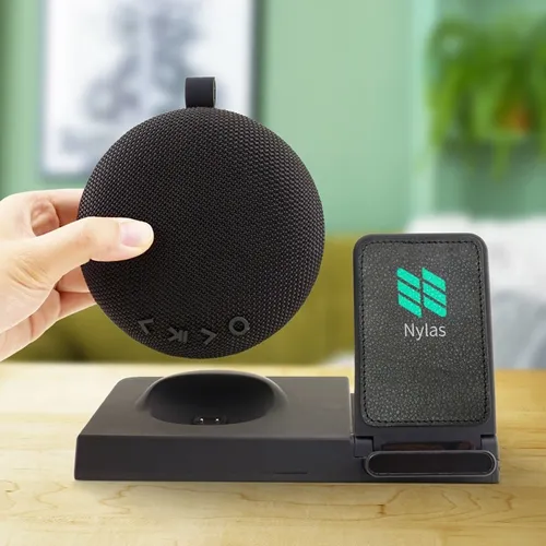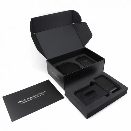 The Chi-Charge Beethoven provides a powerful audio experience from its detachable wireless speaker while charging your device, wirelessly or by USB port. To charge, set your wireless charging enabled device on the Chi-Charge Beethovan device stand to begin charging. And don't worry if your device is not wireless charging enabled! The USB port on the back of the unit allows you to charge your device with its USB charging cable. Packaged in an executive black gift box and branded on the lea