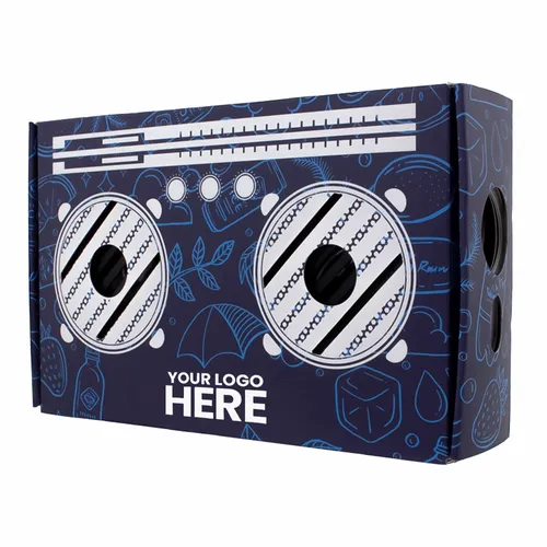 A wireless speaker wrapped in a completely customizable boombox-styled Mailer Gift Box. It has a powerful sound output with two 4W speaker units. It's great for in-the-office background music or recreational get-togethers.