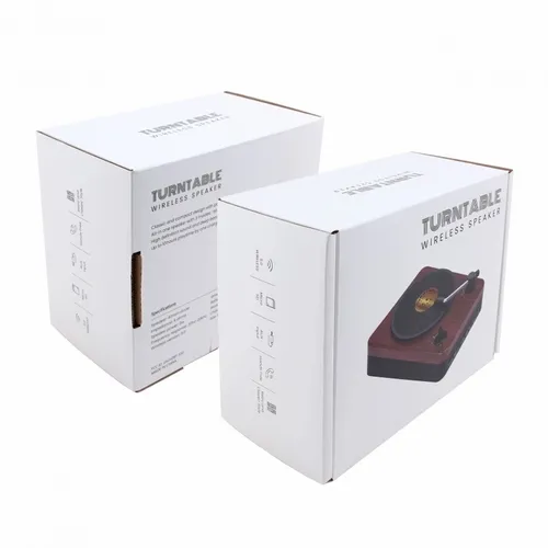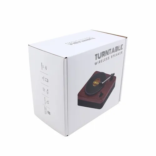The wireless Turntable Speaker adopts a classic retro design, combined with perfect sound quality to bring you an excellent audio experience. The Turntable Speaker is packaged in a gift box and can be decorated with a custom decal on the faux vinyl record and your logo printed in full color on the side of the Turntable Speaker.